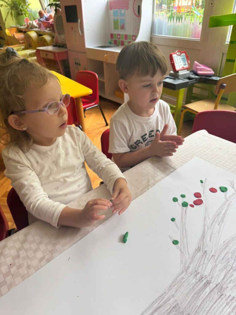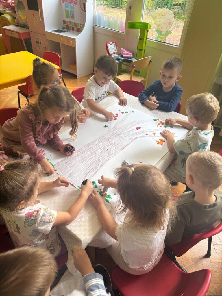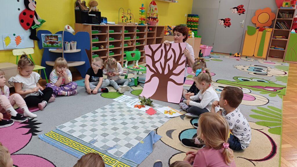 Wszystkie grupy brały udział w ciekawych zajęciach, rozmowach i zabawach związanych z tematyką drzew.