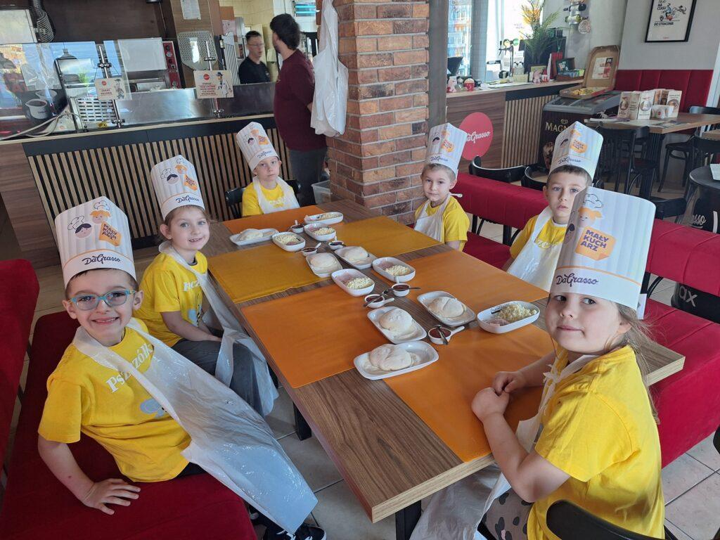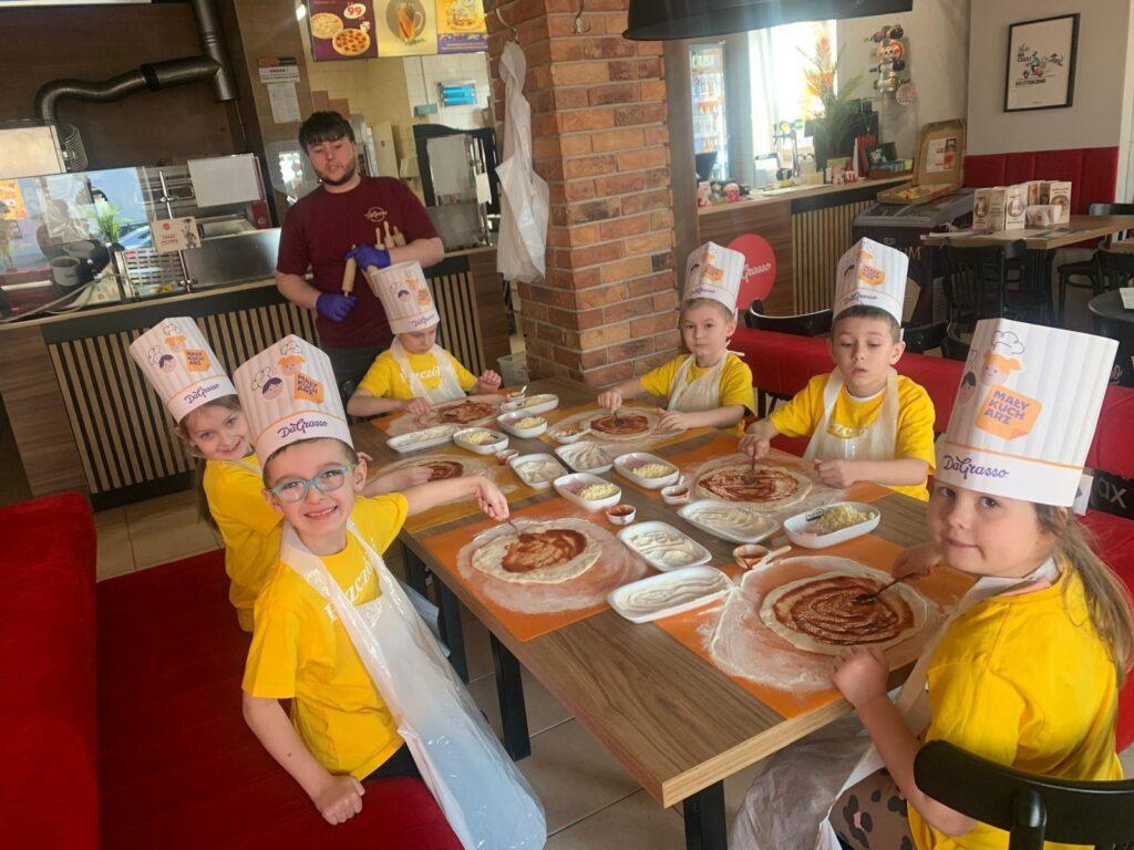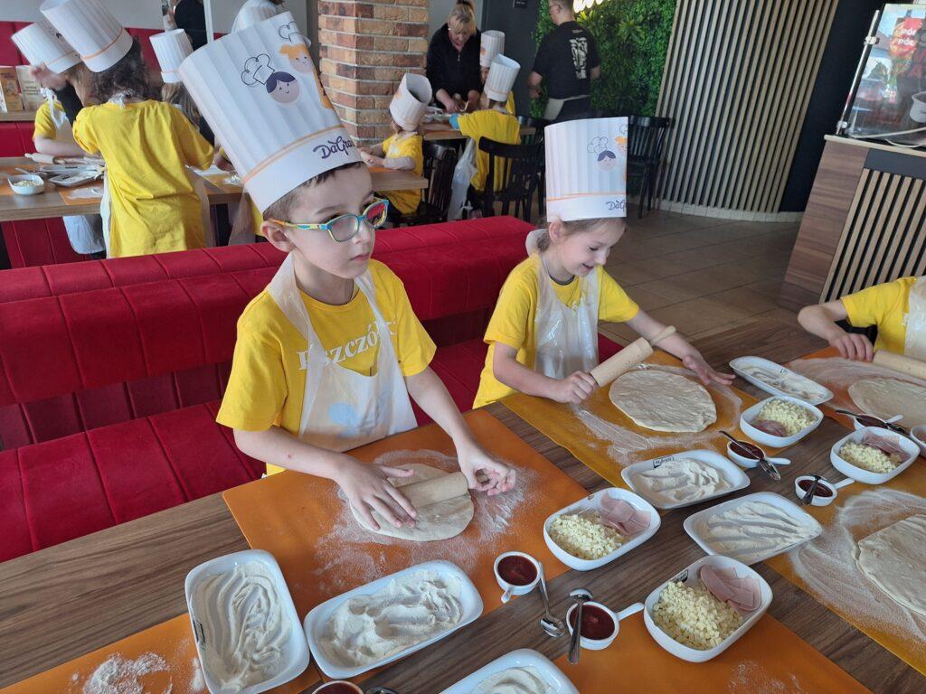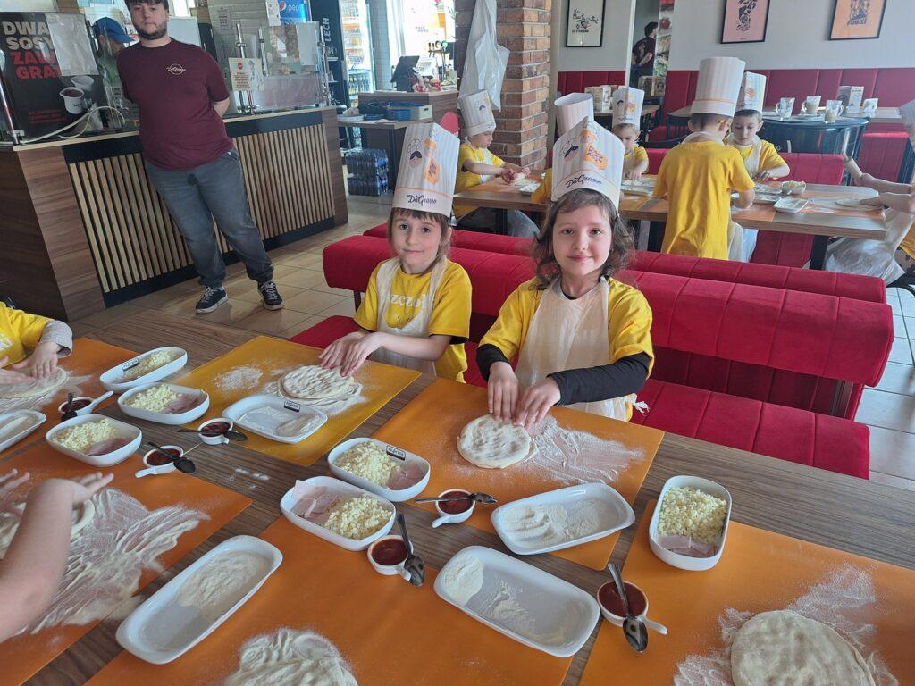 Dzieci samodzielnie przygotowywały swoje pizze – wybierały składniki, układały je na cieście i z ogromnym zaangażowaniem tworzyły swoje kulinarne dzieła.