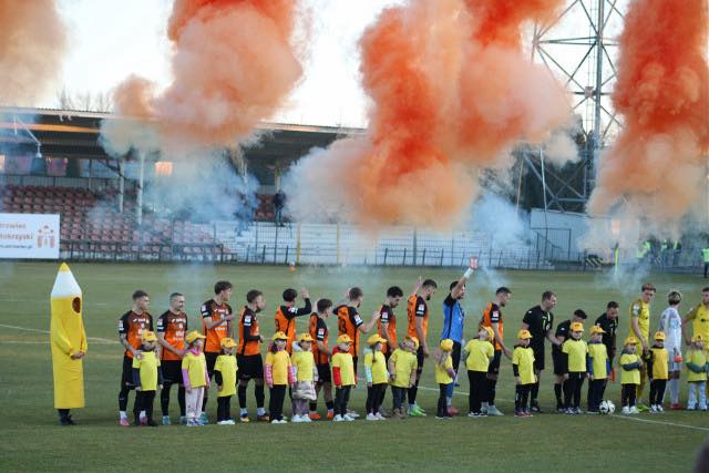Podczas derbowego meczu KSZO 1929 Ostrowiec Świętokrzyski z Naprzód Jędrzejów piłkarzy obu drużyn wyprowadziły dzieci z naszego Przedszkola Publicznego nr 5 „Wesołe Kredki” w Ostrowcu Świętokrzyskim. Przedszkolakom towarzyszyła również przedszkolna maskotka – Kredka. Udział w tym wydarzeniu był dla najmłodszych wyjątkowym przeżyciem oraz okazją do bezpośredniego uczestnictwa w ważnym wydarzeniu sportowym dla lokalnej społeczności.