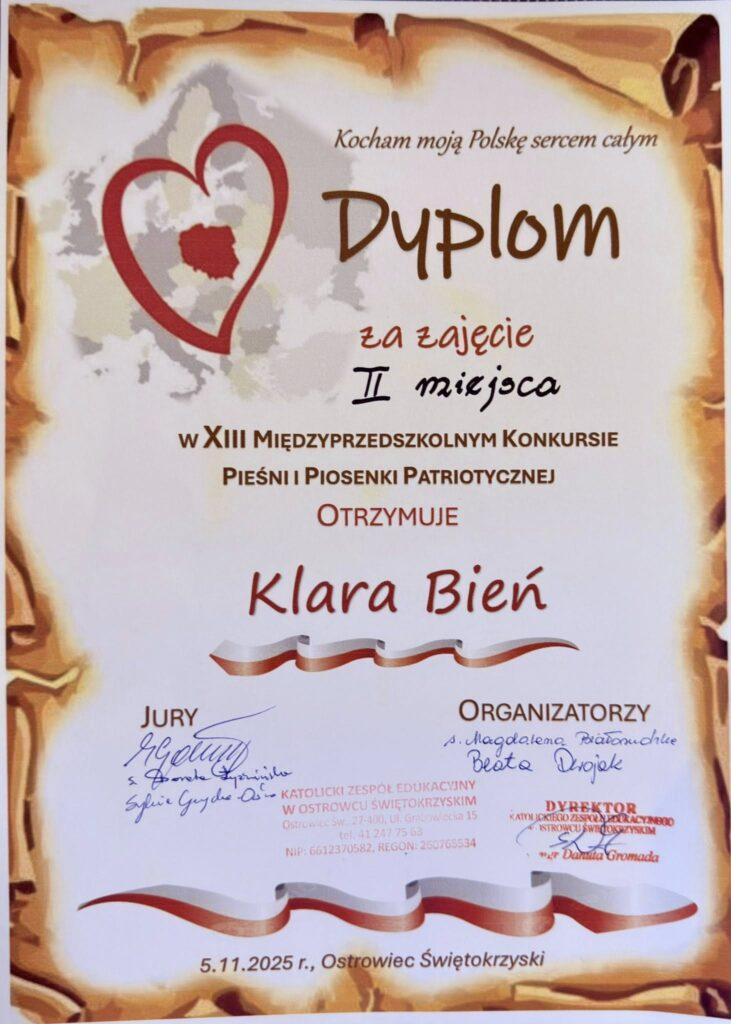 w XIII Międzyprzedszkolnym Konkursie Pieśni i Piosenki Patriotycznej „Kocham moją Polskę sercem całym” .